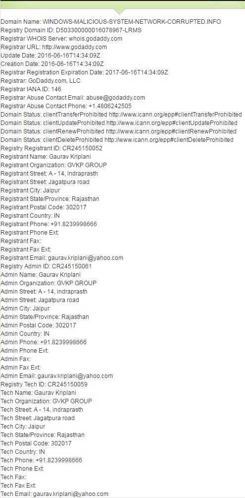 What we learn from the registration is the name, address, phone number and email of the person who registered the domain. Is this accurate? Is this a real person? Can't really tell just from the information provided. Sure we could do more digging into the existence of a Gaurav Kriplani in India, but that would only be out of curiosity, nothing can really be gained.