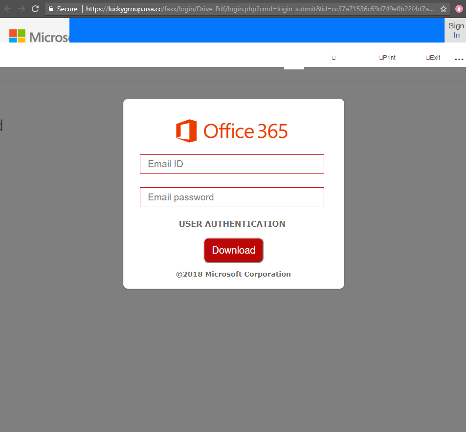 Once clicking "Access Document" you are taken to a poorly done Office365 login screen. Put your username and password in and it's gone off to who knows where.